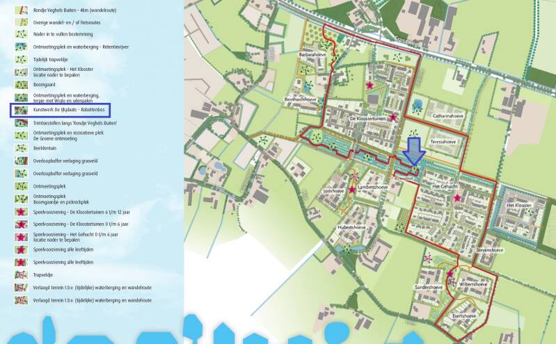 Namens Gemeente Meierijstad nodigen wij u van harte uit voor de opening van het recent herplaatste landkunstwerk "de IJkplaats". Deze is geplaatst in het Rabattenbos tussen Het Gehucht, Teresiahoeve en Lambertshoeve. De exacte locatie ziet u bij de blauwe pijl op de plattegrond hieronder.