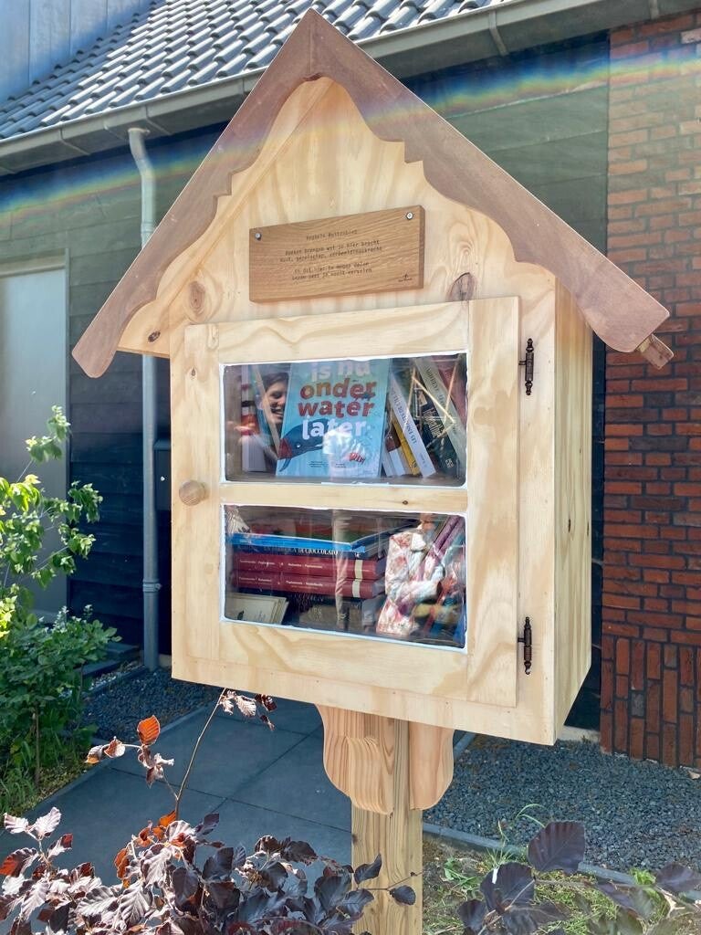 Vanuit het leefbaarheidsbudget van Gemeente Meierijstad is een bijdrage beschikbaar gesteld voor het maken van een boekenkastje. Initiatiefneemster is Marcia van Oers, bewoonster van Veghels Buiten. Vrijwilligers van de werkplaats van Welzijn de Meijerij hebben het boekenkastje gemaakt.