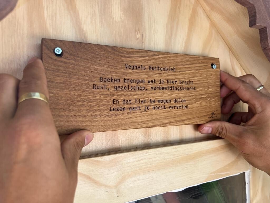 Afgelopen zondag 4 juni 2023 is de boekenkast onder de naam ‘Veghels Buitenbieb’ in Veghels Buiten geopend. Rini, de maker van de boekenkast via Welzijn de Meierij, Rick Terwindt, stadsdichter, en een aantal wijkbewoners waren bij de opening aanwezig. Rick droeg twee toepasselijke gedichten voor die in hout gelaserd zijn op Veghels Buitenbieb en doneerde ook een boek van zijn hand.