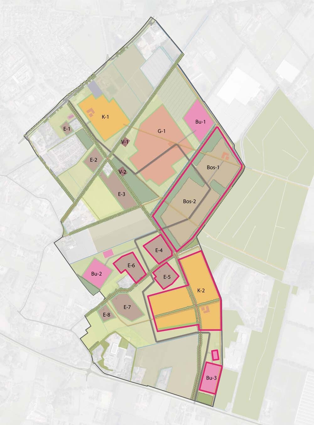De woningen zullen gebouwd worden in verschillende typen buurten: 8 erven, 2 kloosterbuurten, 3 buitenhoven, 2 bosbuurten en een gehucht. Elk type buurt heeft zijn eigen kenmerken en eigenschappen. Zo wordt voor de bosbuurten het bos bij Brabant Water uitgebreid om het bouwvlak, waardoor de nieuwe woningen in het bos komen te staan. Het gehucht kenmerkt zich door een centraal hart, waaromheen gebouwd wordt, zoals vroeger een dorpje ontstond. Meer informatie over hoe de verschillende buurten eruit komen te zien, kunt u lezen in het kwaliteitshandboek. Dit is een prettiger stuk om te lezen dan het bovenstaande bestemmingsplan. Het kwaliteitshandboek kunt u hier vinden: